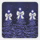 Christmas Sparkling Trees Navy Faux Silver Bow Square Sticker