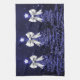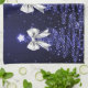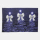 Christmas Sparkling Trees Navy Faux Silver Bow Tea Towel