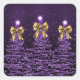 Christmas Sparkling Trees Purple Faux Gold Bow Square Sticker