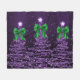 Christmas Sparkling Trees Purple Faux Green Bow Fleece Blanket
