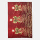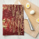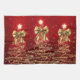 Christmas Sparkling Trees Red Gold Faux Bow Tea Towel