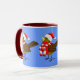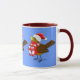 A cute little Winter Sparrow with a warm Christmas scarf and hat, makes an adorable design for a Christmas season mug.