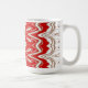 Mug, A vibrant red and white colour seamless pattern design. Coffee mug is a sturdy, often cup used primarily for serving hot beverages like coffee, tea, or hot chocolate. Its durable build allows it to retain heat, making it ideal for sipping. In addition to drinking, coffee mugs are often used for gifting, displaying creativity.