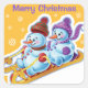 Christmas square sticker Snowmen Snow sports.