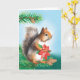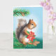 Celebrate the beauty of nature and the joyous holiday season with this enchanting Christmas card. A delightful squirrel perches on a pine branch, holding a vibrant poinsettia, against a serene watercolor background of light blue sky. Send warm wishes, heartfelt greetings, and cherish the moments of love and happiness this festive season brings.