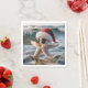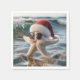A starfish wears a Santa hat and sunglasses while standing in shallow ocean water