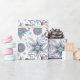 Wrap your gifts in festive elegance with this winter-themed wrapping paper featuring intricate floral and star patterns in shades of purple, teal, and silver. Set against a crisp white background, these designs evoke a sense of magic and celebration—perfect for Christmas morning, winter birthdays, or seasonal gifting.