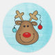 Cute the Red Nose Reindeer Stickers for all your Holiday Gifts s background is a textured blue colour. Great to use on Holiday mail or Christmas packages.