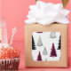 This pattern is based on a Christmas theme and features a repeating arrangement of fir trees of different sizes and colours. Some are adorned with star toppers and small circular ornaments to add to the festive atmosphere. The pattern is evenly spaced, giving it a clean, modern feel.