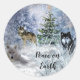 Christmas Sticker with Wolves and Winter Snow