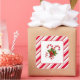 This Christmas sticker is shown with a festive holiday candy cane stripes print.