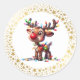 Christmas sticker is shown in a round shape with a cute festive Rudolph print.