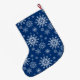 This Christmas stocking is shown in a festive winter snowflakes print.