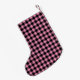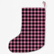 This Christmas stocking is shown in a black and pink color buffalo plaid print.