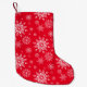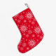 This Christmas stocking is shown in a festive winter snowflakes print.
