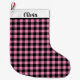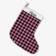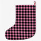 This Christmas stocking is shown in a black and pink color buffalo plaid print.