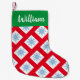 Snowflakes of blue on a background of bright red cover this holiday stocking. Customise with the name of initials of your favourite elf.