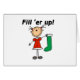 An adorable stick figure girl holds up her Christmas stocking and text reads "Fill 'er up!" on cute holiday T-shirts, hoodies, and sweatshirts sure to delight any child!
