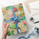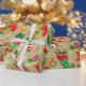 Adorable Christmas wrapping paper features festive holiday stockings filled with toys and treats.