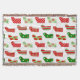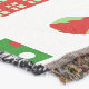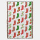 This throw blanket has a Christmas design of stockings strewn about with different patterns on them.
