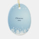 The Nativity story as told in the Gospel of Luke, Chapter 2. "Fear not, for behold I bring your good tidings of great joy which shall be to all people. For unto you is born this day in the city of David a Saviour which is Christ the Lord." Bible verse on blue snowflake winter background. Customise the year on the back using the text template box provided.