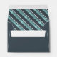 Part of a coordinating design set for Christmas, this envelope features interior stripes with an outdoorsy theme in shades of watchet blue, dark teal and white. The exterior colour can be changed to suit your needs. A template has been provided to add your name and address on the back flap. Search ID861 thru ID864 to see additional colour options and other products in this modern, Christmas design set.