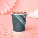 Part of a coordinating design set for Christmas, this paper cup features diagonal stripes in shades of watchet blue, dark teal and white. Optional 'Happy Holidays' text and a template have been provided to add your name and/or other text. Search ID861 thru ID864 to see additional color options and other products in this modern, Christmas design set.