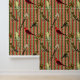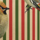 Vintage scarlet tanager, parrot, waxing and flycatcher birds paired with mistletoe and Christmas stripes on a sepia background.