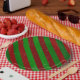 Red and green stripes for your Christmas holiday, like a festive candy cane, with a slight gradient and a smattering of tiny snowflakes for good measure. May your home be merry and bright!