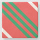 Red, Green and White Christmas Diagonal Striped Stone Coaster.