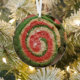 The front of this double sided ornament has a pretty red and green swirled Christmas sugar cookie. The back you can personalise to say whatever you want.