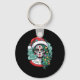 Christmas Sugar Skull Art Woman Santa Hat Festive Key Ring