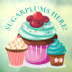 Perfect for cafe or bakery - SUGARPLUMS HERE! with a festive colourful cupcake.