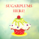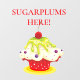 Perfect for cafe or bakery - SUGARPLUMS HERE! with a festive colourful cupcake.