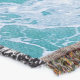 Crashing deep blue ocean waves in the background with conifers and Christmas berries framing the word "JOY". A beautiful Xmas themed coastal design ideal for Christmas in Summer or coastal Christmas celebrations.