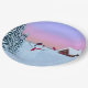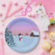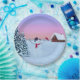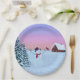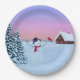 Acrylic painting of a cute snowman admiring a cardinal at sunset on Christmas eve