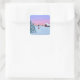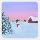 Acrylic painting of a cute snowman admiring a cardinal at sunset on Christmas eve