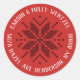 Close your holiday card envelopes with this red, round, personalised sticker featuring a nordic sweater style snowflake motif.