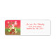 Return address label with my Christmas design of colorful little hearts on a red and green background.