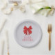 "Add a delicate touch of holiday cheer with this pastel Christmas paper plate featuring a charming red bow. Perfect for pastel-themed holiday gatherings, brunches, or festive parties, these plates combine soft, elegant colors with a classic Christmas accent for a unique and stylish table setting."