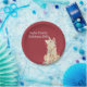 Dog and Christmas lights illustration on festive red background. Customise with holiday message