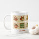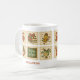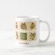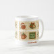 A cheerful Christmas teacher mug featuring vintage postage stamp-style illustrations of festive school icons. Perfect for hot cocoa, coffee, or tea, this holiday mug makes a thoughtful Christmas gift for teachers.