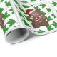 Cute Christmas Teddy Bear with candy canes and holly gift wrap.