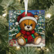 Christmas Teddy Bear Faux Stained Glass Glass Ornament