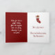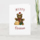 Christmas Teddy Bear greeting card. White and red with personalized verse and name. A cute teddy bear on front and a teddy bear in a stocking on the inside.