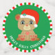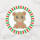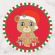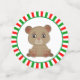 Cute Christmas Teddy Bear Cartoon on green and red Table Confetti.