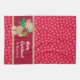 Add a touch of seasonal cheer to your kitchen with this adorable holiday kitchen hand towel. Towel features a teddy bear wearing a green scarf and carrying Christmas gifts and a candy cane. The background is red and has white falling snowflakes. Across the middle is a dark red ribbon with a gold border and space for your Merry Christmas greeting and your family name.