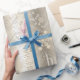 This Christmas gift wrap design features a beautiful text pattern dotted with snowflakes all in shades of shimmering gold. Some of the text includes 'Merry, Bright, Noel, Season's Greetings, Peace, Joy and Happy Holidays.' Search ID257 to see other colour options and additional products with this design.
