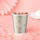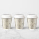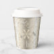 This Christmas paper cup design features a beautiful text pattern dotted with snowflakes all in shades of shimmering gold. Some of the text includes 'Merry, Bright, Noel, Season's Greetings, Peace, Joy and Happy Holidays.' Search ID257 to see other color options and additional products with this design.