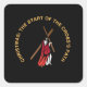 This design artistically connects the meaning of Christmas with sacrifice through a visual of Jesus carrying the cross and elegant circular text, creating a contemplative and premium impression that is perfect for stickers, greeting cards, labels, or wall clocks.